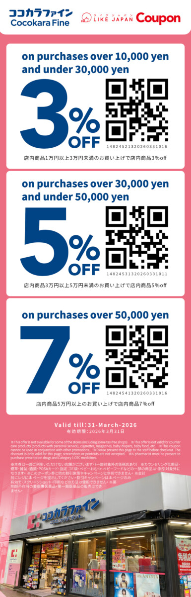 What’s even better? If you purchase any single item worth 1,000 JPY or more (before tax), you’ll get a 5% discount—a great deal to shop more while saving money!