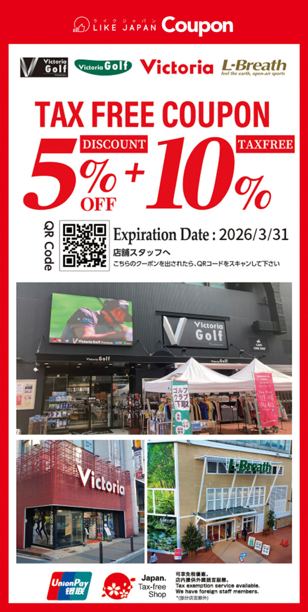 Japan Travel Coupon 12. Victoria / L-Breath / SuperSports Xebio Sports Store Coupon 10% Tax-Free + 5% OFF