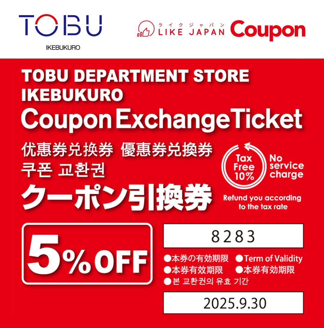 Japan Travel Coupon 15. Tobu Department Store Ikebukuro 5% OFF + Tax Free