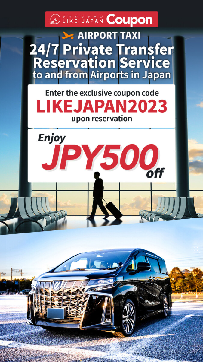 Japan Travel Coupon 16. Tokyo Airport Taxi’s Japan Airport Private Transfer Reservation Service: ¥500 discount