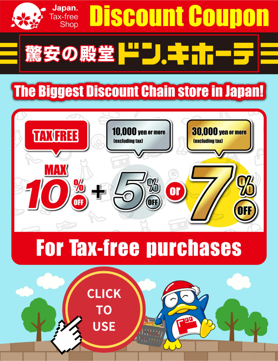 Japan Travel Coupon 2. Don Quijote Discount Store : Tax Free 10% + 5% or 7%OFF