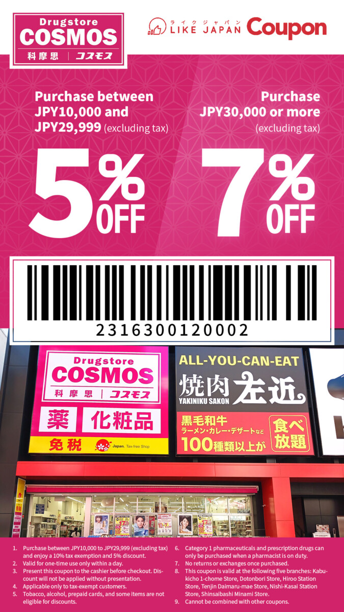 Japan Travel Coupon 6. COSMOS Pharmaceutical: Tax Free 10%+Up to 7%OFF