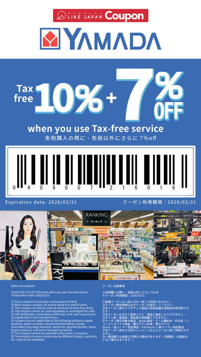 7% OFF Yamada Denki Coupon : Spend 5,000 JPY or more (before tax) to enjoy !